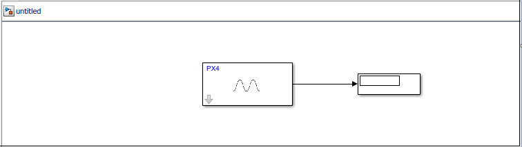 4. From the Simulink > Sinks tab in the Library Browser, drag and drop a Display block to the model. Connect the output of the PX4 Analog Input block to the Display block.
