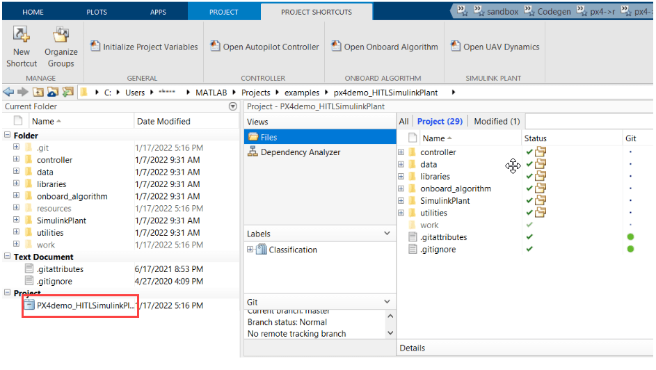 3. Click on the .prj file to launch the same Project in current MATLAB.
