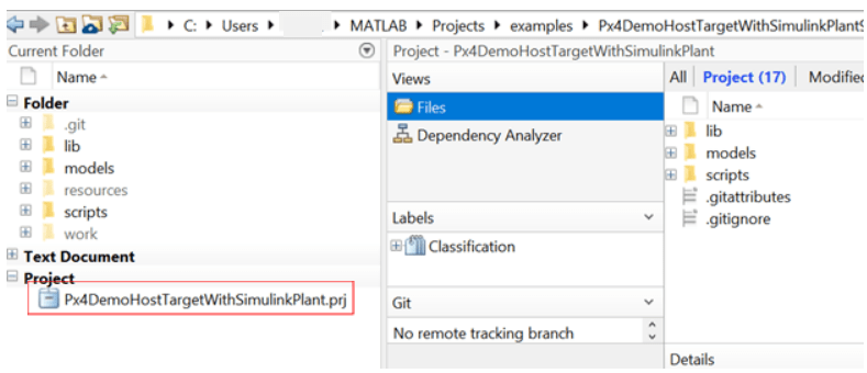 3. Click on the .prj file to launch the same Project in current MATLAB.