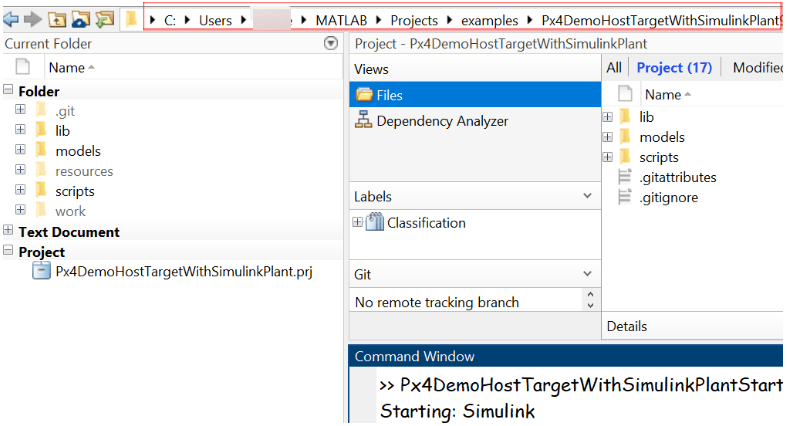 2. Navigate to the project path previously copied in current MATLAB.