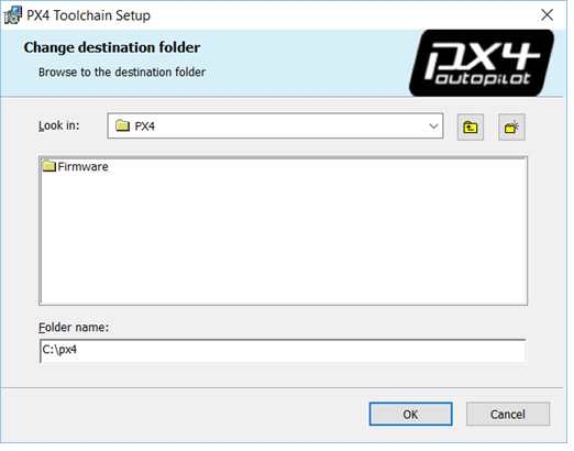 C:\px4), and then click OK.