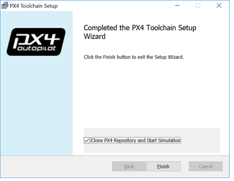 At the last step of the PX4 Toolchain Setup wizard, do the following: