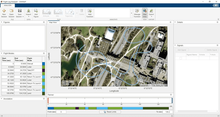 The Flight Log Analyzer app enables you to analyze log files generated by simulated or real flights.