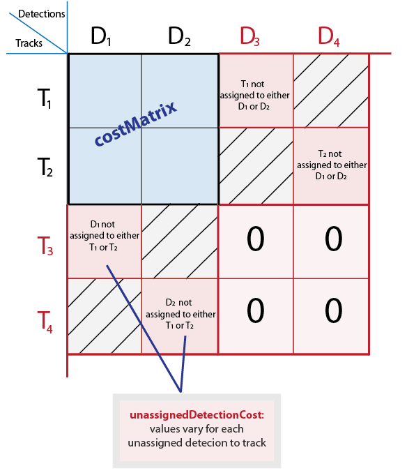 the cost of unassigned tracks and detections separately. The assignments,unassignedTracks,unassignedDetections]