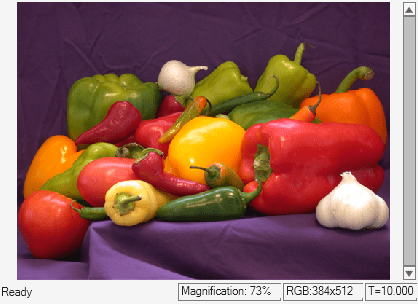 This model reads an input image using an Image From File block with the File name parameter set to peppers.png.