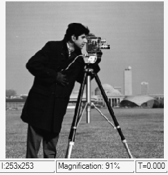 This model reads an input image using an Image From File block with the File name parameter set to cameraman.tif and Output data type parameter set to single.