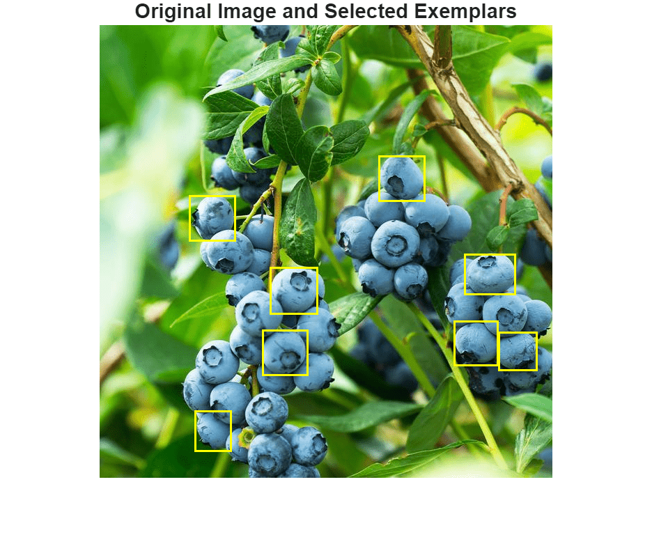 annotatedImage = insertShape(I,"rectangle",exemplarBboxes,"LineWidth",3); imshow(annotatedImage) title("Original Image and Selected Exemplars")