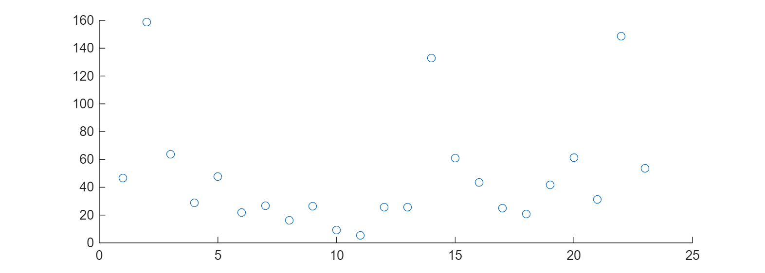 scatter(1:numel(dsFilteredImages.Files),counts)