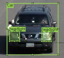 Repeat the previous steps to label the headlights of the other car. To draw the labels more precisely, use the pan and zoom options located in the upper-right corner of the labeling window.