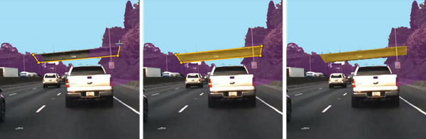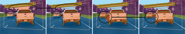 • Decrease the opacity to see the image more clearly. For instance, decrease the opacity to make it easier to find the border between the bottom of the car and the road.