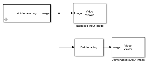 This example shows you how to remove interlacing effects from an image by using the Deinterlacing block.