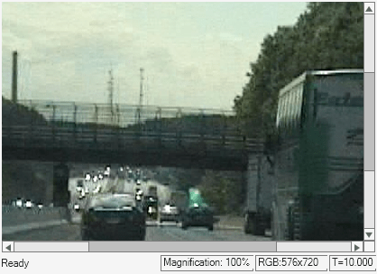 The interlaced image has jagged lines that are the result of the temporal lag between the top and the bottom fields of the image. The Deinterlacing block removes the jagged lines and the output image is free from visible artifacts.