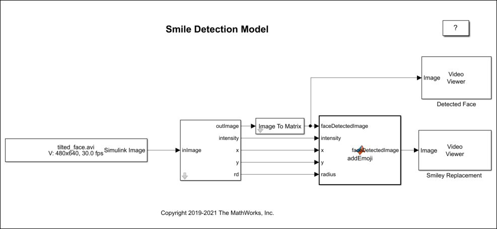 1. Open the smileDetect_codegen.slx model from your current MATLAB folder.