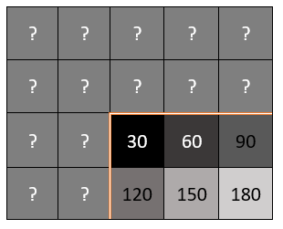 The diagrams show the top-left corner of a frame, with padding added to accommodate a 5-by-5 filter kernel. When computing the filtered value for the top-left active pixel, the algorithm requires two rows and two columns of padding. The edge of the active image is indicated by the double line.