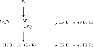 where qmf is such that Hi_R and Lo_R are quadrature mirror filters (i.e., Hi_R(k)