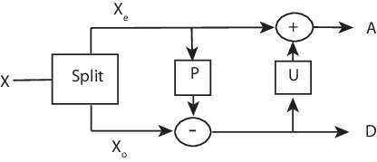 • Update — Replace x(2n) with x(2n)+d(n)/2. This is equal to (x(2n)+x(2n+1))/2.