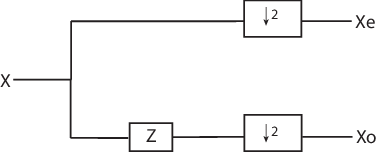 where Z denotes the unit advance operator and the downward arrow with the number 2 represents downsampling by two. In the language of lifting, the operation of separating an input signal into even and odd components is known as the split operation, or the lazy wavelet.