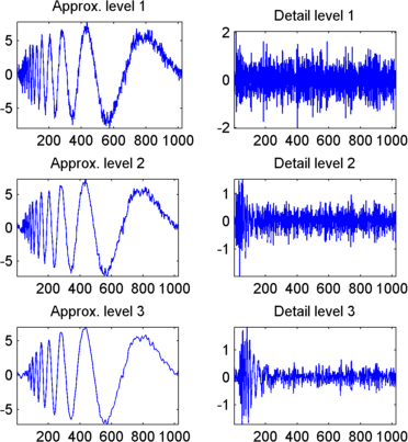 This generates the coefficients of the approximations at levels 1, 2, and 3 (