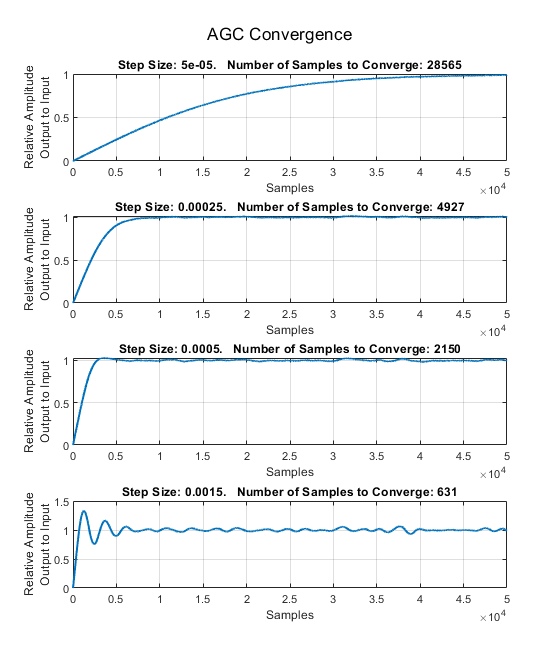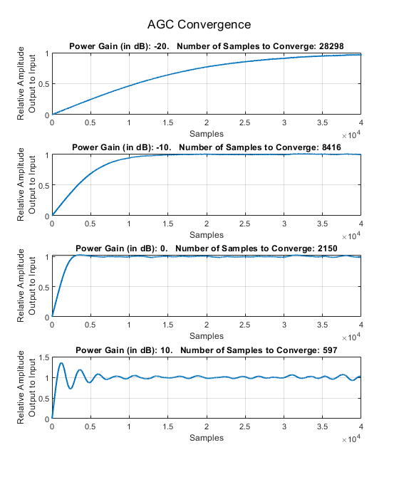This example shows how to implement a digital automatic gain control (AGC) for single and multicarrier systems using Simulink® blocks. These Simulink blocks are optimized for HDL code generation and hardware implementation.