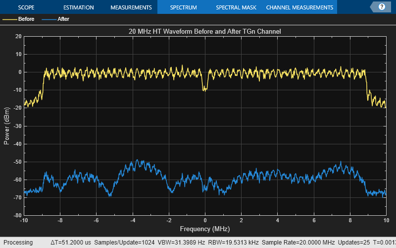 title = '20 MHz HT Waveform Before and After TGn Channel';