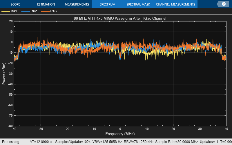 postChVHT = awgn(tgacChan(preChVHT),10,'measured');