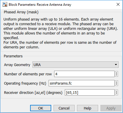 A receive antenna array which supports up to 16 elements. This module allows control of the array geometry, number of elements in an array, operating frequency, and receiver direction.