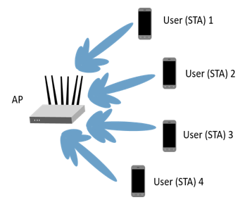 OFDMA - each of the four users is assigned a separate resource unit (RU) and the transmission is beamformed.