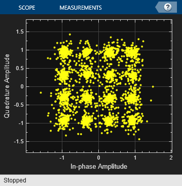 When the simulation is run, the packet error rate is displayed. This is updated after each packet is processed. The equalized data symbols are also displayed for each packet processed. By default, 200 packets are simulated.