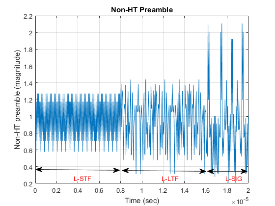 nonHTPreamble = [lstf;lltf;lsig]; % Combine the non-HT fields