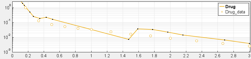 2. Visually inspect data and model response. Create a simulation task in the SimBiology desktop where you plot your data ( plot external data ), together with your model response. You can create sliders for the parameters you are trying to estimate (or use group simulation). You can then see whether, by varying these parameter values, you can bring the model response in line with your data, while at the same time giving you good initial estimates for those parameters. This plot can also indicate whether units might cause a discrepancy between your simulations and data, and/or whether doses administered to the model are configured correctly and result in a model response.