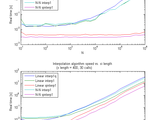 The attached image shows the result of speed tests performed on a 2.4GHz, 2GB Windows XP machine. The same x, y, and xi vectors were used for each algorithm. The qinterp1 method came out ahead in all parameters tested. Note that, surprisingly, in the case of evenly-spaced x vectors, interp1q is slower than interp1 for most parameters, and interp1's nearest-neghbor interpolation is almost always slower than linear interpolation!