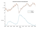 The selected series are returned into a timetable. When multiple series are requested by the user, they are all merged together and returned into the same timetable. Merging returns the union (rather than the intersection) of the dates of the selected series. If a series is shorter than the rest of the requested series, the absent observations are set into missing (NaN). Similarly, series of different frequencies can also be requested in the same function call, and missing observations (that are due to the frequency mismatch) are treated in the same manner. The user can request the desired range of dates by setting the Name-Value pairs 'StartDate' and 'EndDate'. If no range is specified, the function retrieves all the observations available in FRED for the selected series.