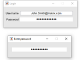 Dialogue boxes for user to enter username and password, where the password is hidden. Also a function for scrambling a password.