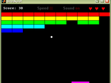 Using a single ball, the player must knock down as many bricks as possible by using the walls and/or the paddle below to ricochet the ball against the bricks and eliminate them. Blue bricks earn one point each, cyan bricks earn two points, green bricks earn three points, yellow bricks earn four and the top-level red bricks score five points each. To add to the challenge, the paddle shrinks to one-half its size after the ball has broken through the red row and hit the upper wall.