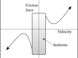 Karnopp's model is among the most computationally-efficient methods to simulate stick-slip motion. Karnopp's approach is to compare a virtual velocity signal with a dead-zone (around zero) to determine the state transitions between stuck and sliding [1]. The velocity dead-zone represents the unmodelled pre-sliding regime wherein the sliding body may undergo microscopic sliding but is macroscopically stationary.