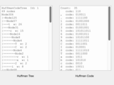Paste text selection into app; make Huffman tree and code and calculate information entropy; encode; decode and check.