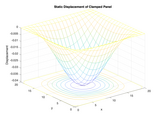 Bending: A thin plate is subjected to either uniform or non-uniform static pressure loading. Clamped and simply supported boundary conditions can be applied. Displacement results are checked using analytical formulas and Ref. [1].
