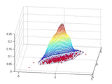surf(X,Y,density,'LineStyle','none'), view([0,70])