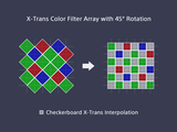 For the X-Trans CFA with 45° rotation only. The pre-research and verification includes remosaicing and demosaicing.