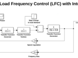 This Simulink model demonstrates the Load Frequency Control (LFC) of a single-area power system using integral control action to maintain system frequency in response to step load disturbances. It includes transfer function models for the governor, turbine, and generator, representing the dynamic behavior of each component in the power system. The feedback loop incorporates integral control to eliminate steady-state frequency errors and enhance the system's frequency regulation capabilities.
