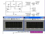 The outputs are being displayed in scopes. This demo serves as a teaching aid to show that Astable has no stable states; Bistable has two stable states and Monostable has only one stable state.