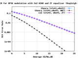 The equalization scheme used is Zero Forcing. As expected, the simulated results with a 2×2 MIMO system using BPSK modulation in Rayleigh channel is showing matching results as obtained in for a 1×1 system for BPSK modulation in Rayleigh channel.