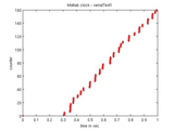 Load the sketch on your arduino. LED13 will light, indicating that the arduino is waiting for a response from Matlab to start. Load the m file, and change the com port to the port where the arduino USB is mapped on your PC (I use Linux, thus the /dev/ttyUSB1, it will be something like 'COM3' in windows). Run the .m file, and LED13 will turn off as Matlab signls the arduino, data is read, and a plot is created of time info versus counter data (simulating sensor data). Remember to reset the arduino before each m file run (LED13 must be on)! Used an arduino mega, but should work fine on most arduinos. Thanks to Tom Igoe and Robot Grrl (see sketch references to http addresses). Robot Grrl plots as she goes, and you can do that also, although it will slow things down slightly. But, note the key to these files, is the use of the proper TERMINATOR. The matlab set terminator statement using LF and the use of serial.println in arduino is the secret ingredient to success. If you don't use these, then you are relying on inserted timing delays, yuck.