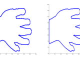 In the test code, a contour is obtained using chain codes (bwtraceboundary) and smoothed. The example is taken from a real application
