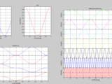 A group of subplot cells, sharing the same "parent" cell, can be glued together in order to save figure space using the '-g' option string at the cell's content (instead of empty group []). For example, if the 3 columned subplots of the previous example are to be glued together, sharing the same X-axis, the follwing cell expression should be used: