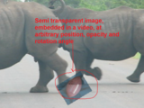 The goal of this function is to embed an image into a video. The basic use is to highlight object of interest. Another example is a case you wish to hide something on the video- like someones face etc... This function allows you to enter the image to video frames, where user chooses the frames, the image mask ROI, image position inside video, image opacity, image angle etc...