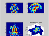 This tool provides an interactive 3D volume visualization. The function accepts as arguments any 3D matrix (of type double or uint8) and optional colormap, and displays a 2x2 figure of the 3 orthogonal planar views (neurological coordinate system) along with the built-in 'slice' visualization. Further, as you select slices through click and drag or scroll, the 3D view and color-coded orthogonal planes are updated accordingly. You may rotate the 3D view by manually selecting the 'Rotate 3D' figure button, and the 3D perspective (CameraPosition) is maintained as you continue changing slices.