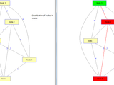 First it asks for number of nodes, then it generates a figure with nodes distributed in space with time delay between nodes. Then it computes shortest path using Distance Vector Routing algorithm as per the theoretical explanation given in Wikipedia link: