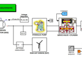 The power system is composed from a wind turbine (15 kW) connected to an electrical synchronous generator. The shaft of the turbine is also connected to a pump that supplies a hydraulic circuit linked through a servo valve to a cylinder. The motion of the rod is transformed into rotational movement on the axis of the Aileron. A position controller is used so that the deflection angle tracks a given reference by controlling the servo valve.