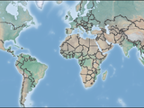 Shaded relief map blended with a land cover palette, overlaid with boundary lines, made with Natural Earth.